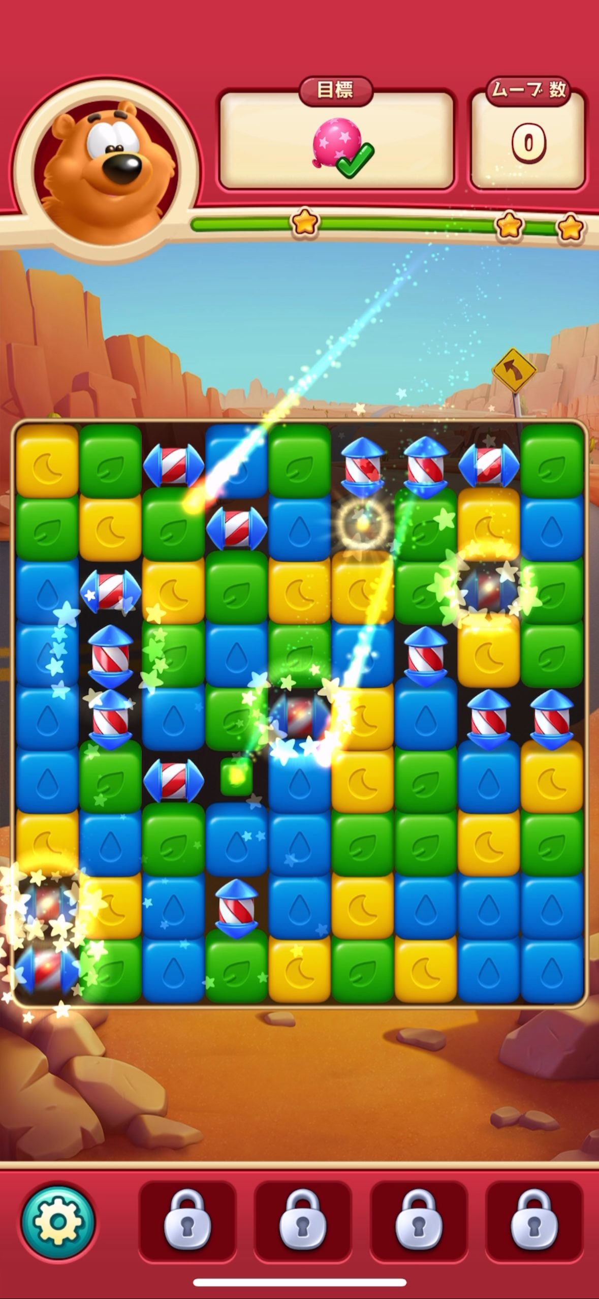 特に印象的だったのが、箱やバブルが邪魔している盤面を、ロケットや爆弾を組み合わせて一掃できた瞬間